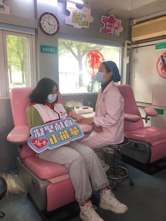 在今天的志愿献血队伍里,有多次献血的志愿者,也有我们初次尝试献血的学生。在开始献血时,工作人员问到他们害不害怕时,他们都勇敢的说不怕。整个献血过程在献血车上有条不紊地展开。志愿者们配合血站工作人员进行填表、体温检测、血压测量、血液初筛等工作,最后符合献血条件的志愿者都撸起袖子、伸出胳膊,等待献出自己的一份爱心。