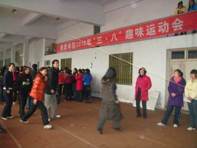2010年3月5号下午2点,由学校工会组办的“三·八”妇女节系列活动之—趣味运动会在南区体育训练馆拉开帷幕。我院工会组织了强大阵容参加比赛。比赛现场人声鼎沸、热闹非凡。 这次趣味运动会包括抛绣球、流水跳大绳、双人背运篮球接力、集体搬运等四个妙趣横生的体育项目。这些项目集趣味与技能一体,让激情与朝气并发,在欢动愉悦的气氛下,展现了我院教师的风采。 经过激烈的角逐,我院获得集体搬运项目一等奖,其他项目获得参与奖。
