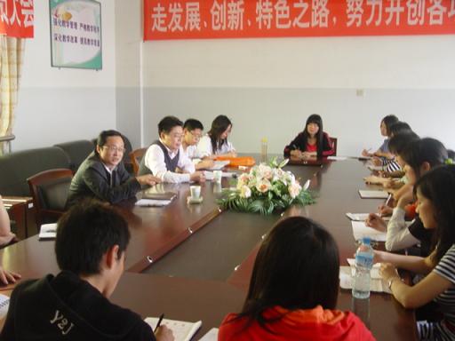 2009年5月5日下午,王为一院长在会议室与我院党校第一期入党积极分子进行座谈。学院党委书记张弢博士、学生事务办公室主任张维功、团委书记王超参加了座谈会。