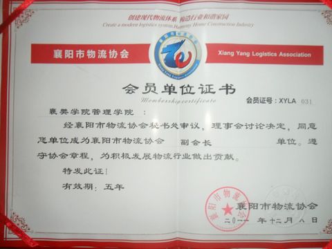 12月8号,经襄阳市物流协会秘书处审议,理事会讨论决定,同意管理学院成为襄阳市物流协会副会长单位。此次入会的加入为管理学院物流管理专业提供了一个与社会交流的平台,为以后的专业实践提供了一个广阔的空间,对以后的就业提供了一个平台。此次的入会,对物流管理专业来说意义深远!