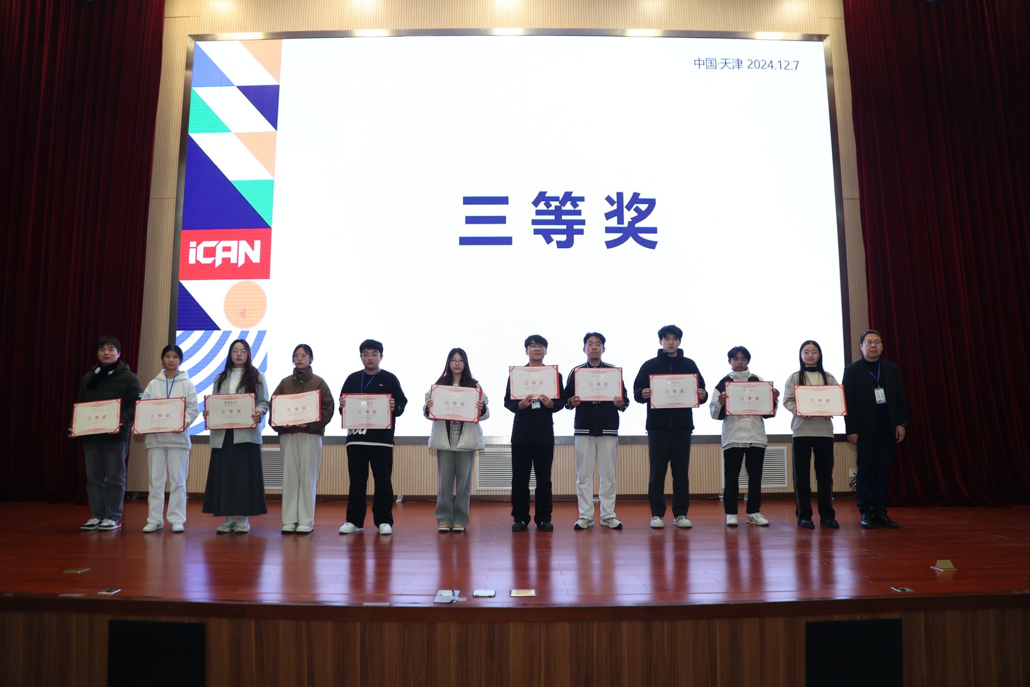 (程传勇、徐静薇)2024年12月7日至8日,2024iCAN大学生创新创业大赛精创杯数字经济决策创新挑战赛全国总决赛在天津师范大学落下帷幕。经过激烈角逐,经管学生徐静薇、张若男、卢启慧组成的永恒荣耀队荣获全国三等奖。