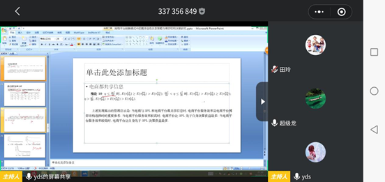 会上,新进博士杨东升老师做了题为《网络平台销售模式中的需求信息共享策略与博弈结构决策研究》的学术报告。杨博士首先向大家介绍了关于信息共享及信息不对称等相关研究问题,通过该问题的研究分析了近5年内国家自科基金申请的中标情况,并指出该方向在近5年一直是研究热门。杨东升博士从网络营销模式选择、需求预测信息共享、和供应链中博弈结构三个方便的内容详细讲解该文章的所运用的研究思路、研究方法、研究途径等内容,分享了如果遇到该类问题该如何去构建模型、求解、分析以及数值模拟。交流会上,老师们积极参与,相互交流学习,有疑问的大家一起积极探讨,想办法解决问题,学术气氛热烈浓厚。