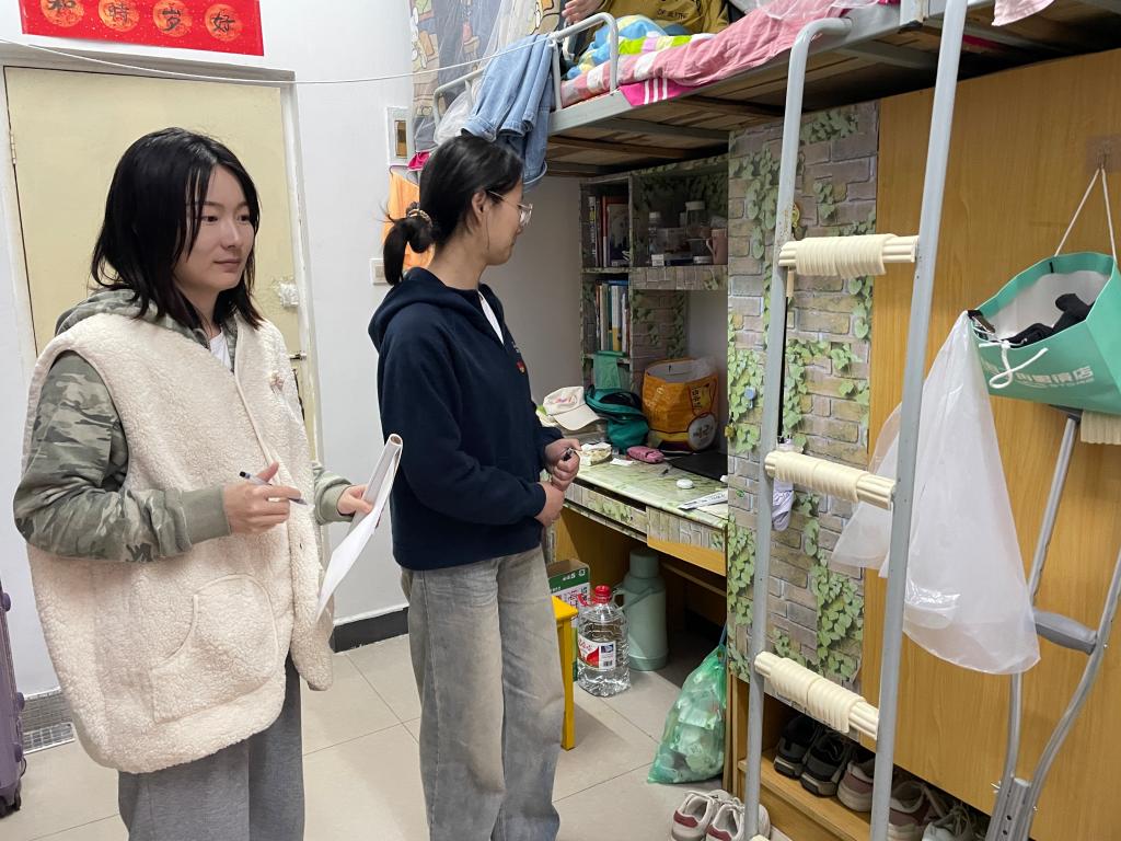 在走访过程中,辅导员们也就学业、生活、心理状态和经济情况等与学生展开深入交流,引导学生明确学习计划目标,规划个人发展路径,养成良好作息规律,并叮嘱同学们要坚决杜绝使用大功率电器,守牢寝室安全警戒线。
