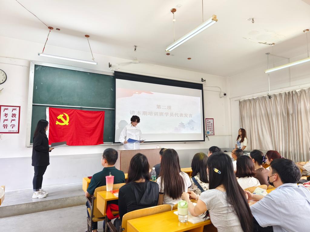 开班仪式在庄严肃穆的国歌声中开始,与会人员全体起立奏唱国歌。23级财务管理专业毛晟同学作为学员代表发言,他表示要时刻铭记习近平总书记对新时代青年的谆谆嘱托,立志做有理想、敢担当、能吃苦、肯奋斗的新时代好青年,他代表全体学员郑重承诺将以最饱满的热情、最全面的投入,最实际的行动来完成本次培训班学习,以实际行动争取早日入党。