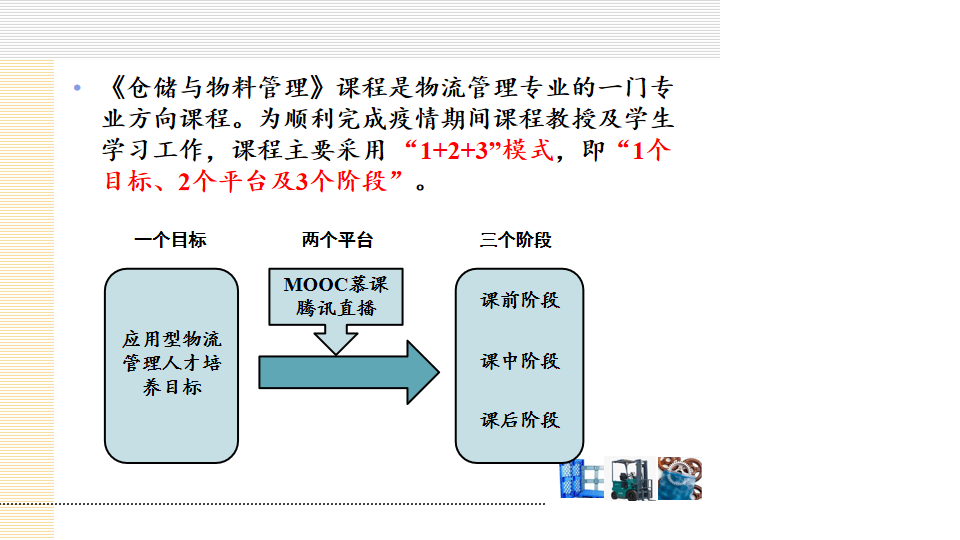 4、目标导向,持续改进,“1+2+3”线上教学模式——《仓储与物料管理》