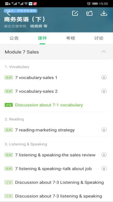 杨晓辉老师:线上线下混合式教学是大势所趋,尽管《商务英语》没有线上课程建设的基础,但是我希望抓住课程改革的契机推进课程建设和教学改革。通过仔细筛选和比较,我决定采用超星学习通自建课程+中国大学慕课异步SPOC的形式开展在线教学。