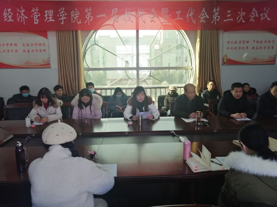 (教工通讯员孙正新)2021年1月12日下午2:10,WilliamHill威廉第一届教代会暨工代会第三次会议在N4-312会议室隆重召开。WilliamHill威廉全体教职工参加了本次大会。WilliamHill威廉党委副书记、学院分工会主席胡益丁主持会议。