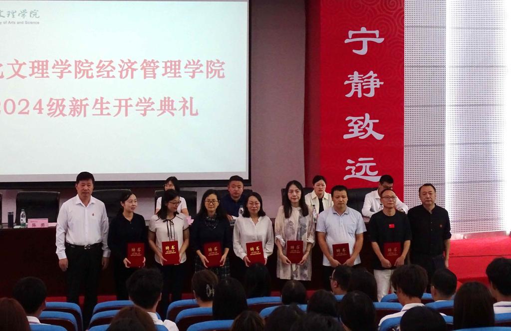 (经管学院 教工通讯员 李玉凤)9月23日下午,学院在图书馆报告厅举行新生开学典礼,院党委书记陈勇、威廉中国官方创新创业教育学院 湖北科创学院(隆中)党委书记、院长唐明生为2024级新生班主任颁发聘书;本科生院副院长肖夏为过生日同学赠送书籍,院长李晓翠作《扬帆经管,筑梦未来:以奋斗书写青春华章》得讲话。开学典礼由学院党委副书记胡益丁主持。