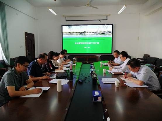 经管学院党委书记陈勇和院长李晓翠分别就学院的党建工作和行政工作情况向吴超仲书记进行了详细汇报。陈勇首先汇报了学院在党建工作开展情况,以及学院在落实中央八项规定,加强样板支部、党员和教师队伍建设,创新学生党建品牌等方面取得的成绩。在从严治党方面,学院将加强领导班子建设,强化师德师风建设,深化为师生办实事,推进党风廉政建设,完善内部治理体系,规划学院文化建设。