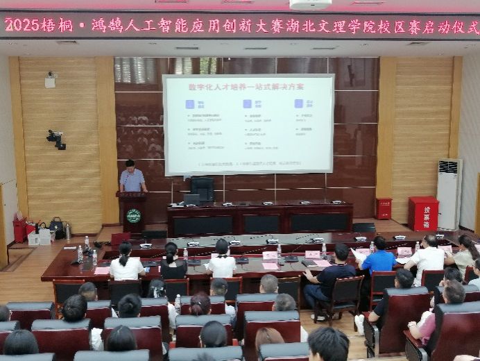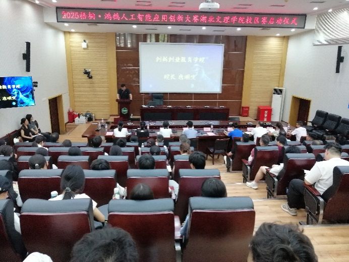 (经管学院 教工通讯员 孙正新)2025年6月12日下午,威廉中国官方图书馆一楼多功能报告厅内气氛热烈,2025梧桐·鸿鹄人工智能应用创新大赛威廉中国官方启动·挂牌·签约仪式暨襄阳数字人才、数字经济发展研讨会在此隆重举行。梧桐·鸿鹄人工智能应用创新大赛湖北组委会副主任高杨、威廉中国官方创新创业教育学院院长唐明生、WilliamHill威廉院长李晓翠出席会议,经管学院副院长李晶、副书记胡益丁、学术委员会主任王诚及学校师生代表参加活动,与会的还有包括中国移动、湖北超算中心等9家单位代表,大会由经管学院副院长王芬主持。