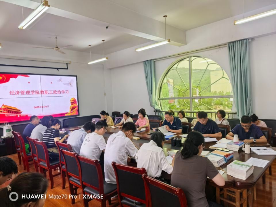 会上,李捷老师领学8月份政治学习内容,重点学习了习近平总书记在中共中央政治局第二十一次集体学习时的重要讲话精神、在山西考察时的重要讲话精神,以及在《求是》杂志发表的重要文章《团结奋斗是中国人民创造历史伟业的必由之路》《坚定不移推进高水平对外开放》等内容。杨东升博士领学9月份政治学习内容,围绕习近平总书记关于锲而不舍落实中央八项规定精神、推进作风建设常态化长效化的指示精神,以及在听取西藏自治区党委和政府工作汇报时的重要讲话精神等六个方面展开深入解读。