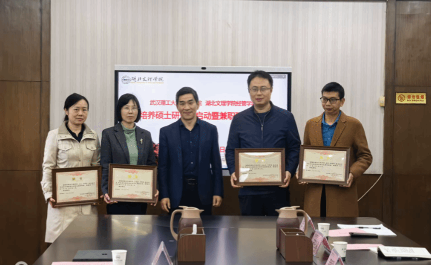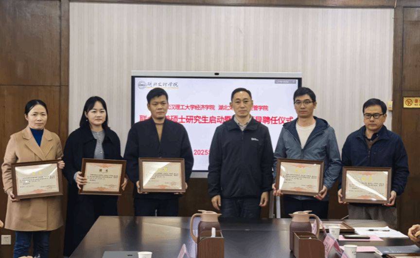 随后举行兼职硕士生导师聘书颁发仪式。由武汉理工大学经济学院党委书记张光华、副院长余谦共同为受聘导师颁发聘书。