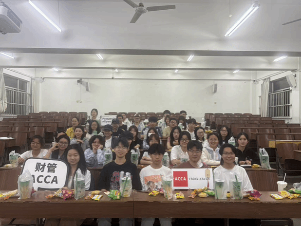 ACCA 学习经验分享环节,2023 级优秀学员代表张井香莲、罗贝贝、朱晨浩、崔泽祺依次登场。他们分别从科目备考策略、时间管理、应试技巧等维度展开系统讲解,为同学们带来了宝贵的学习经验。现场同学们认真聆听,积极提问,气氛热烈,互动频繁。